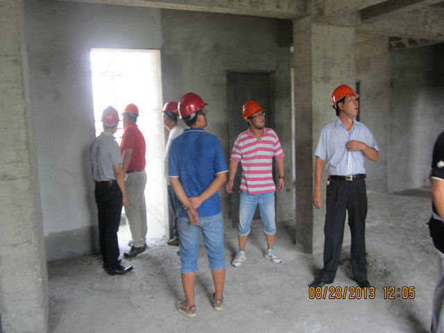 8月28日上午,集团程总经理,副总经理史立京莅临安陆市香格里拉城市花园项目部检查指导工作。程总一行对正在收尾的六标段进行了重点检查,对正在施工的28#楼进行了逐层查验。